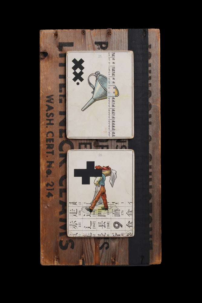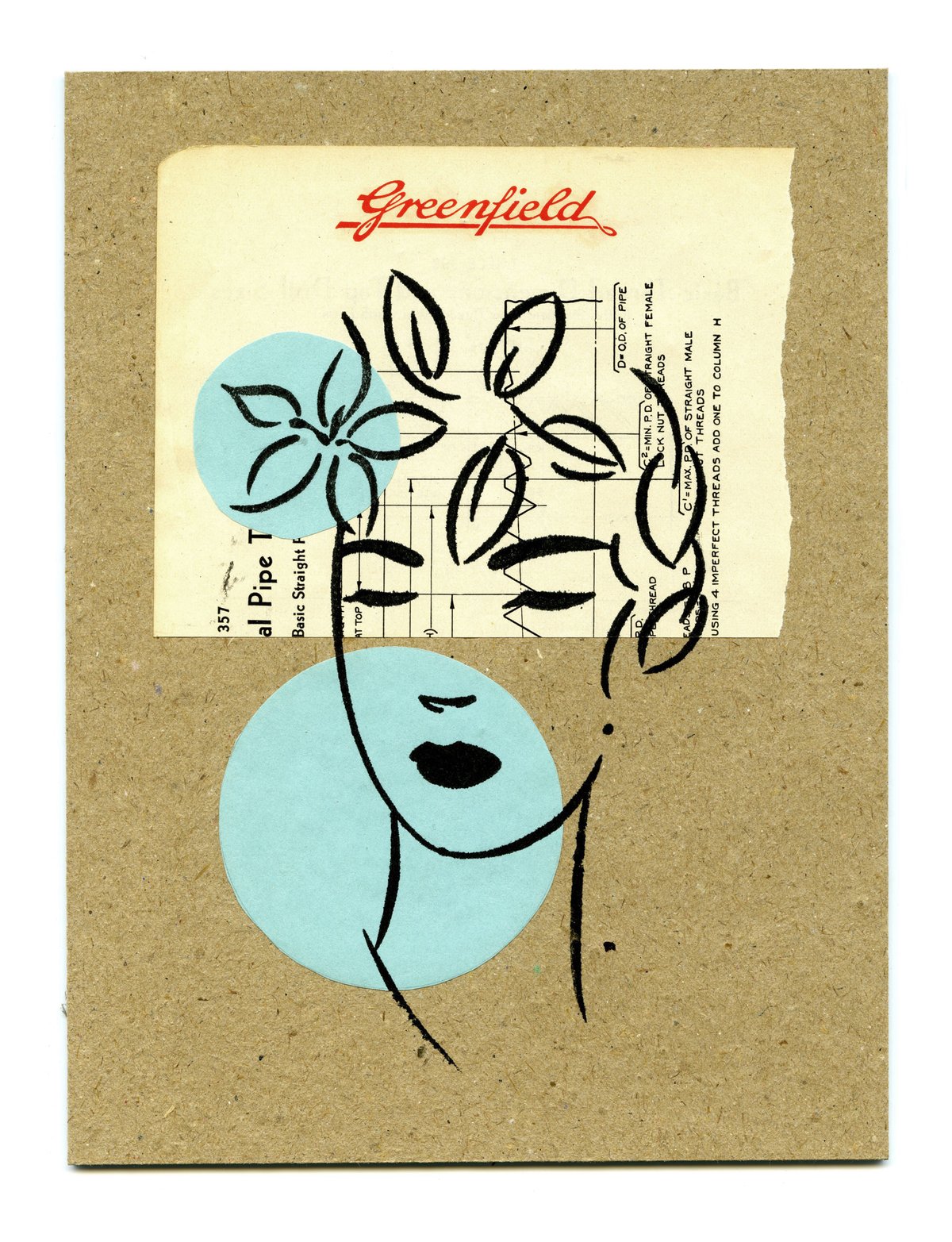 MEDIA: chipboard, hemp paper, color paper, black ink, vintage 1939 Greenfield tools catalog, glue.